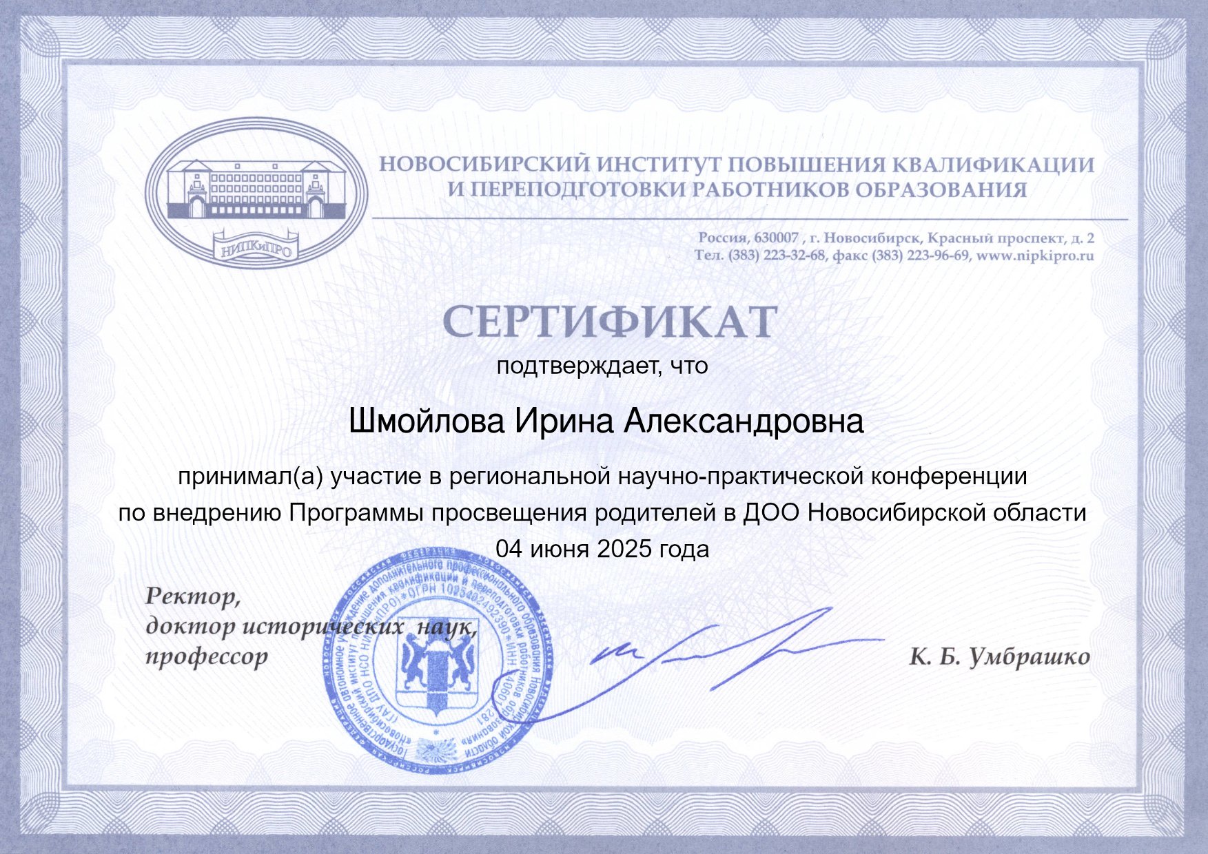 СЕРТИФИКАТ участника региональной научно-практической конференции по внедрению Программы просвещения родителей