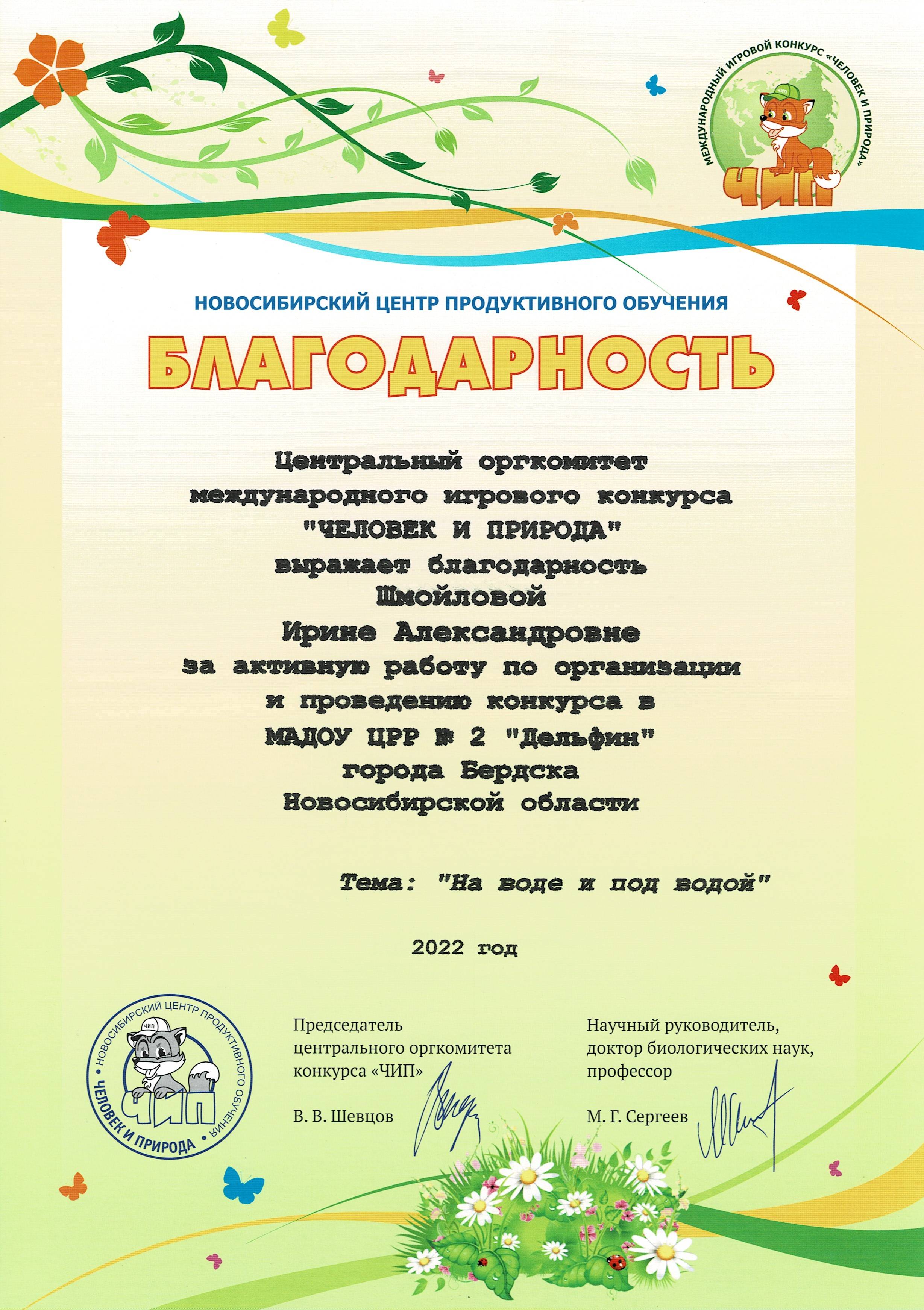 БЛАГОДАРНОСТЬ Центральный оргкомитет международного игрового конкурса "ЧЕЛОВЕК И ПРИРОДА"