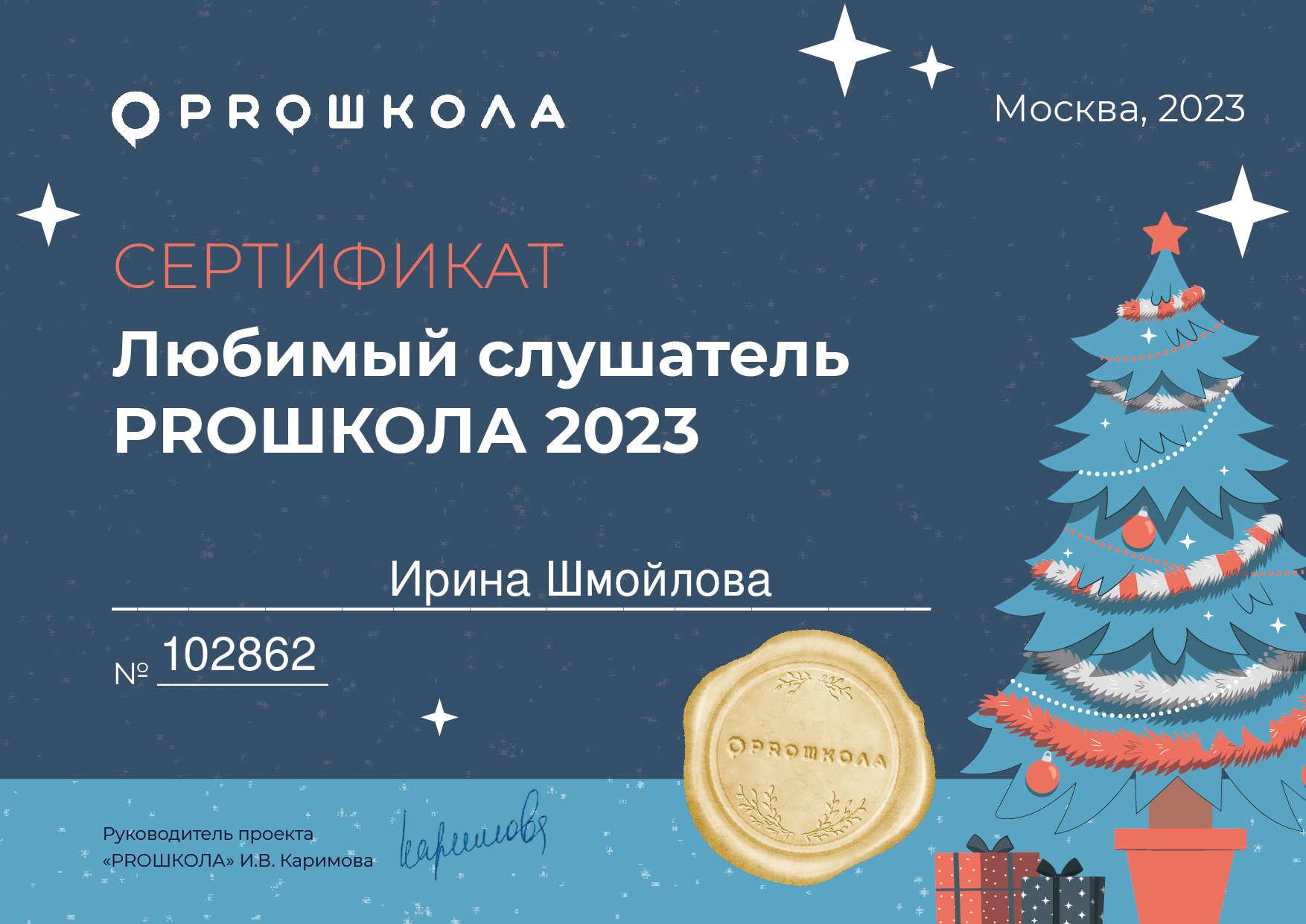 СЕРТИФИКАТ Любимый слушатель PROШКОЛА 2023