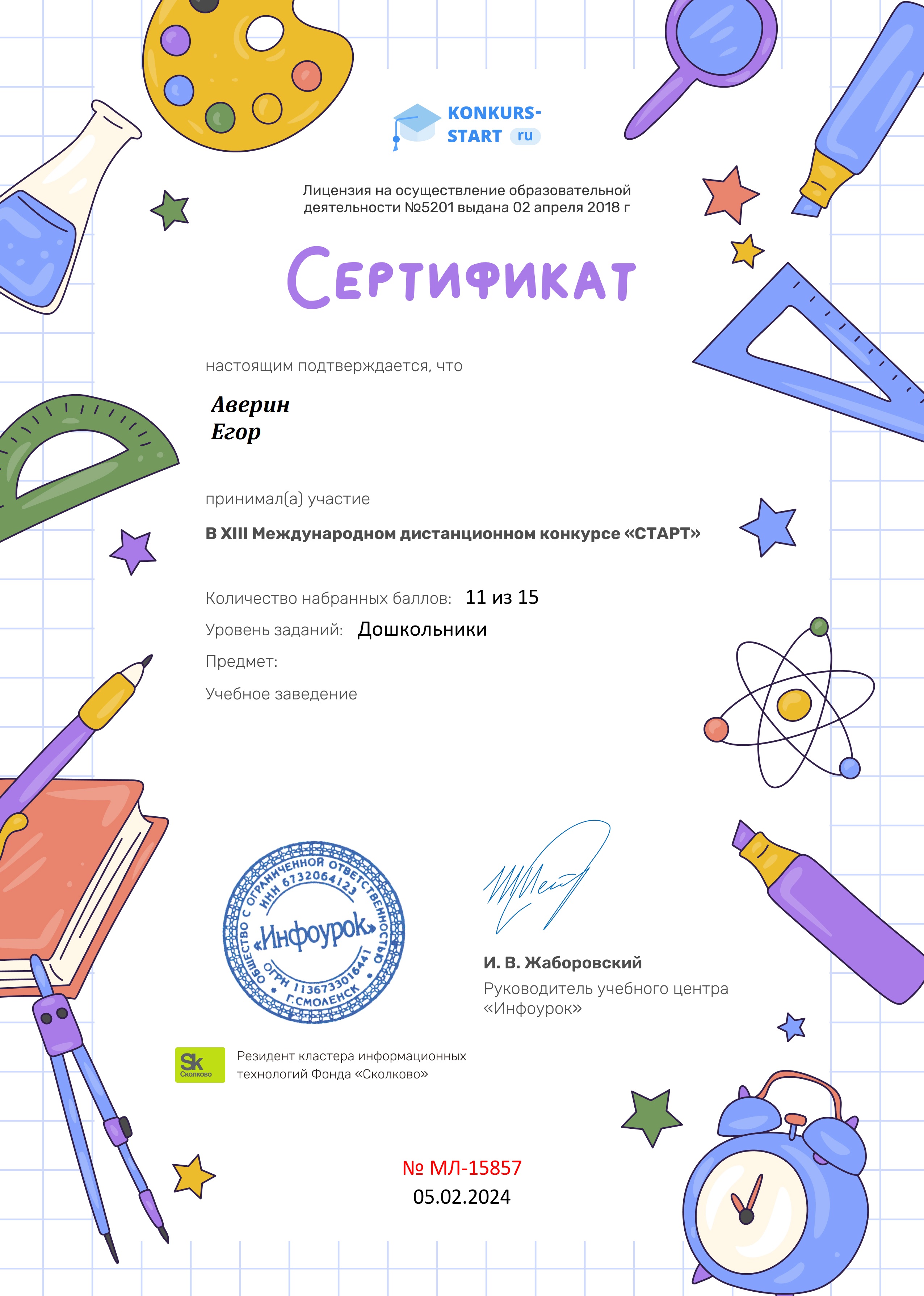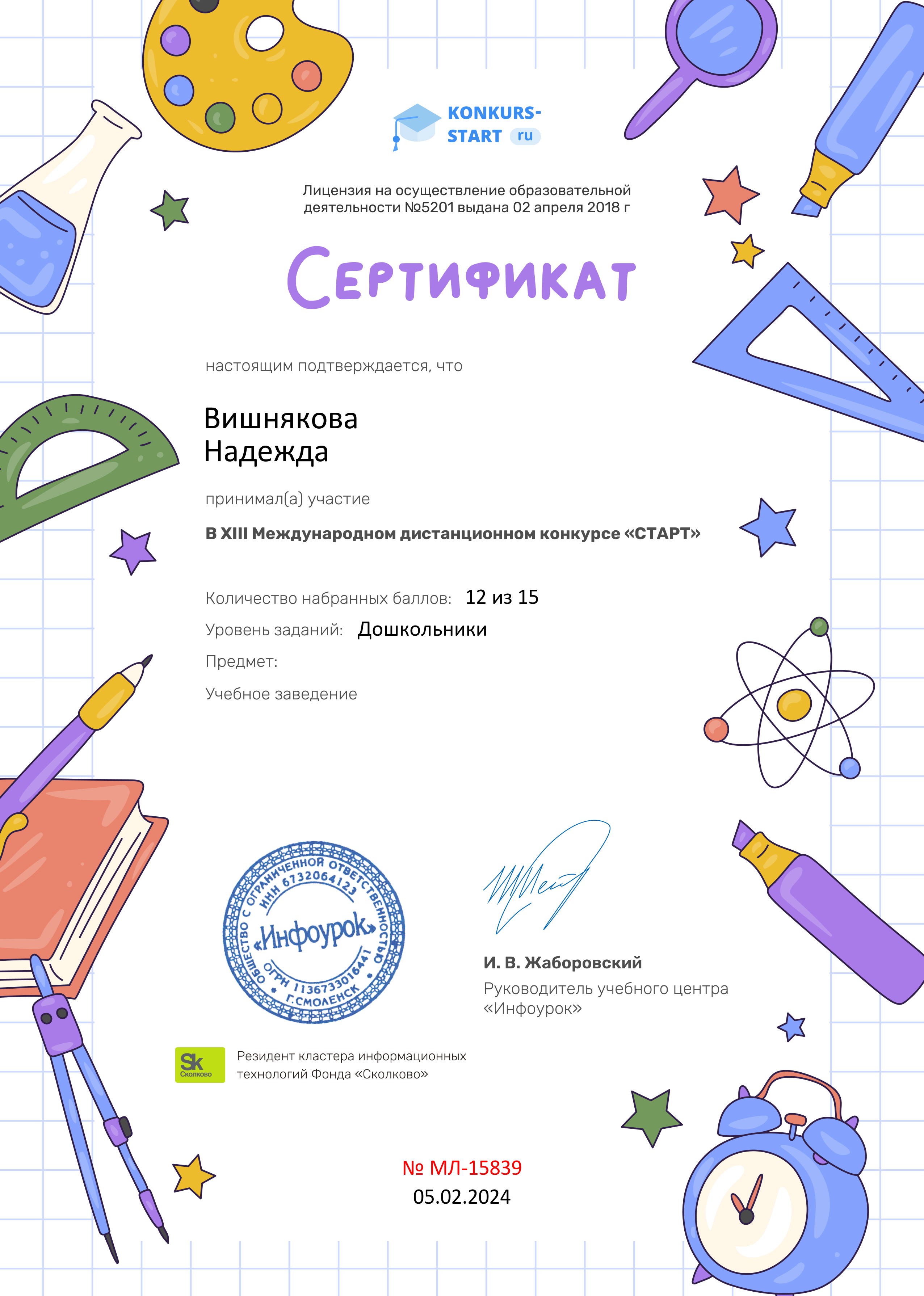 СЕРТИФИКАТ участника